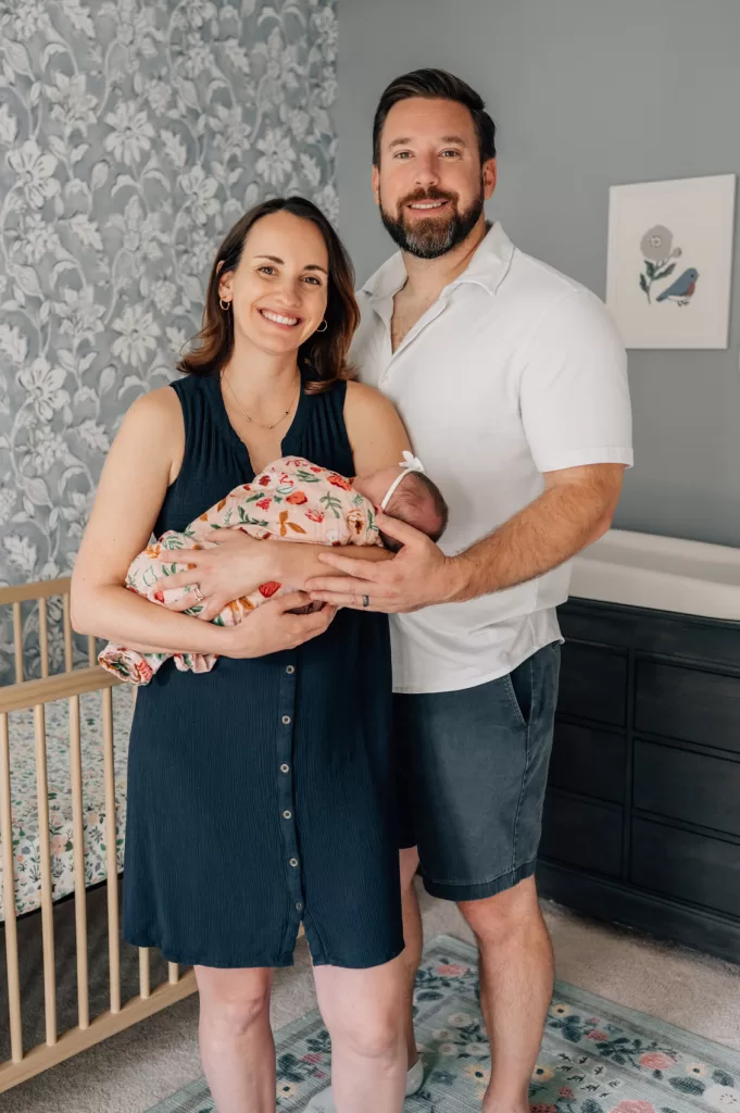You don’t need a spotless home for beautiful photos. I usually photograph in the nursery, master bedroom, and living room, so just a quick tidy-up in those areas is plenty. What matters most is your love and connection, not a perfectly clean house.